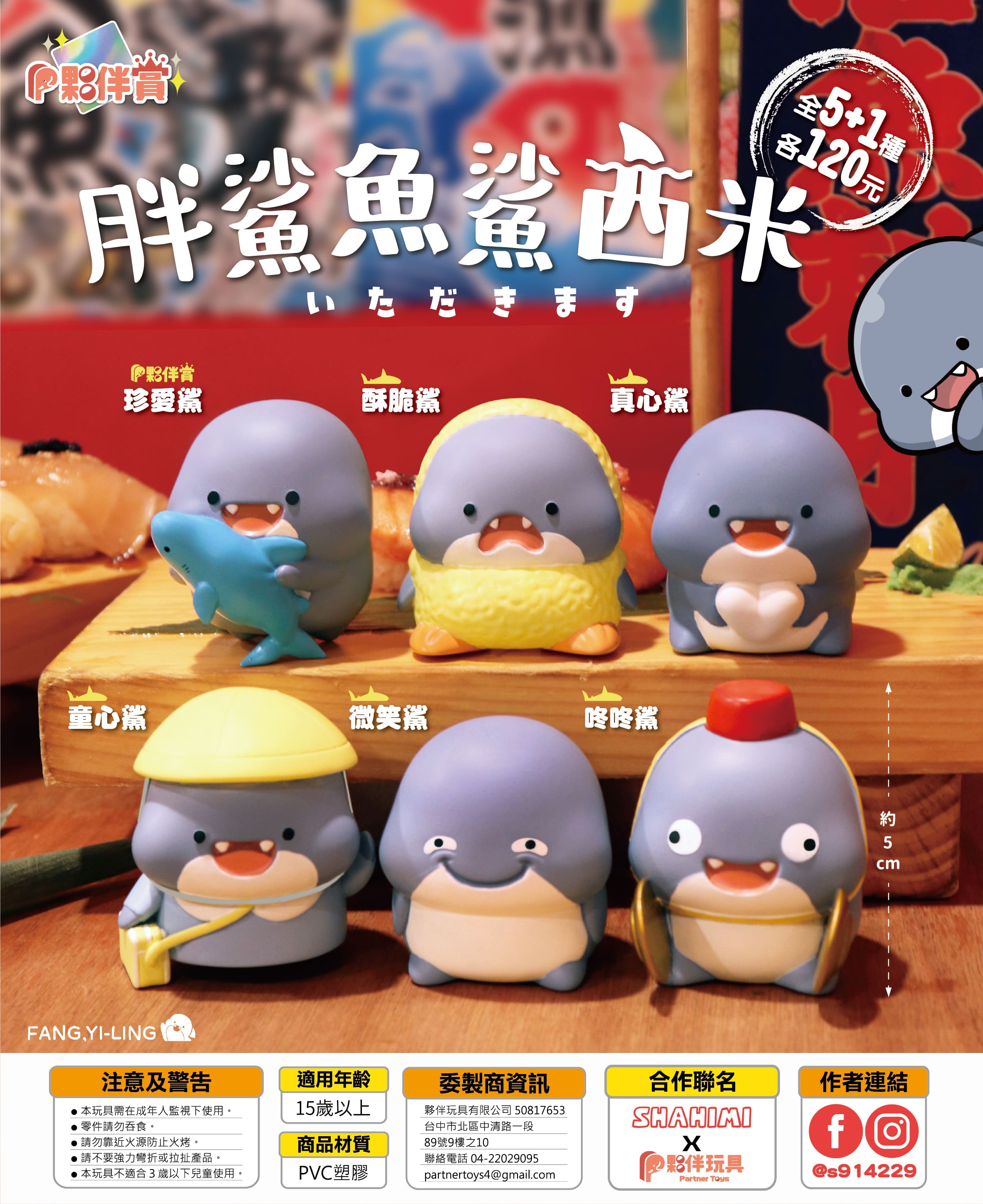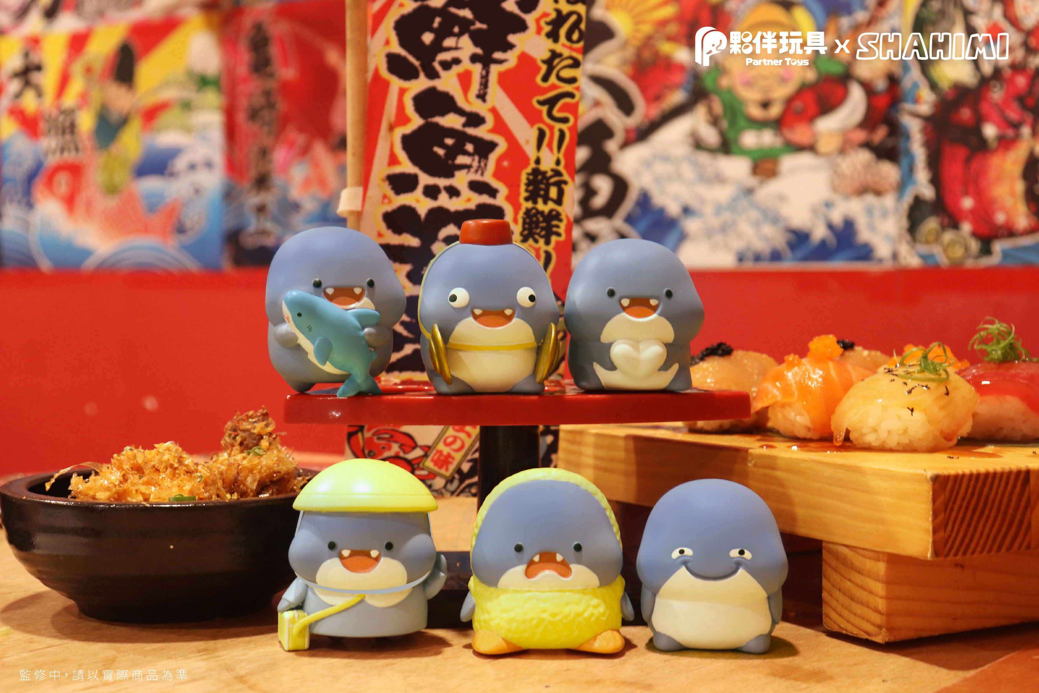 1.一套共基本5款,夥伴賞為隨機出貨,如有抽中將取代微笑鯊。