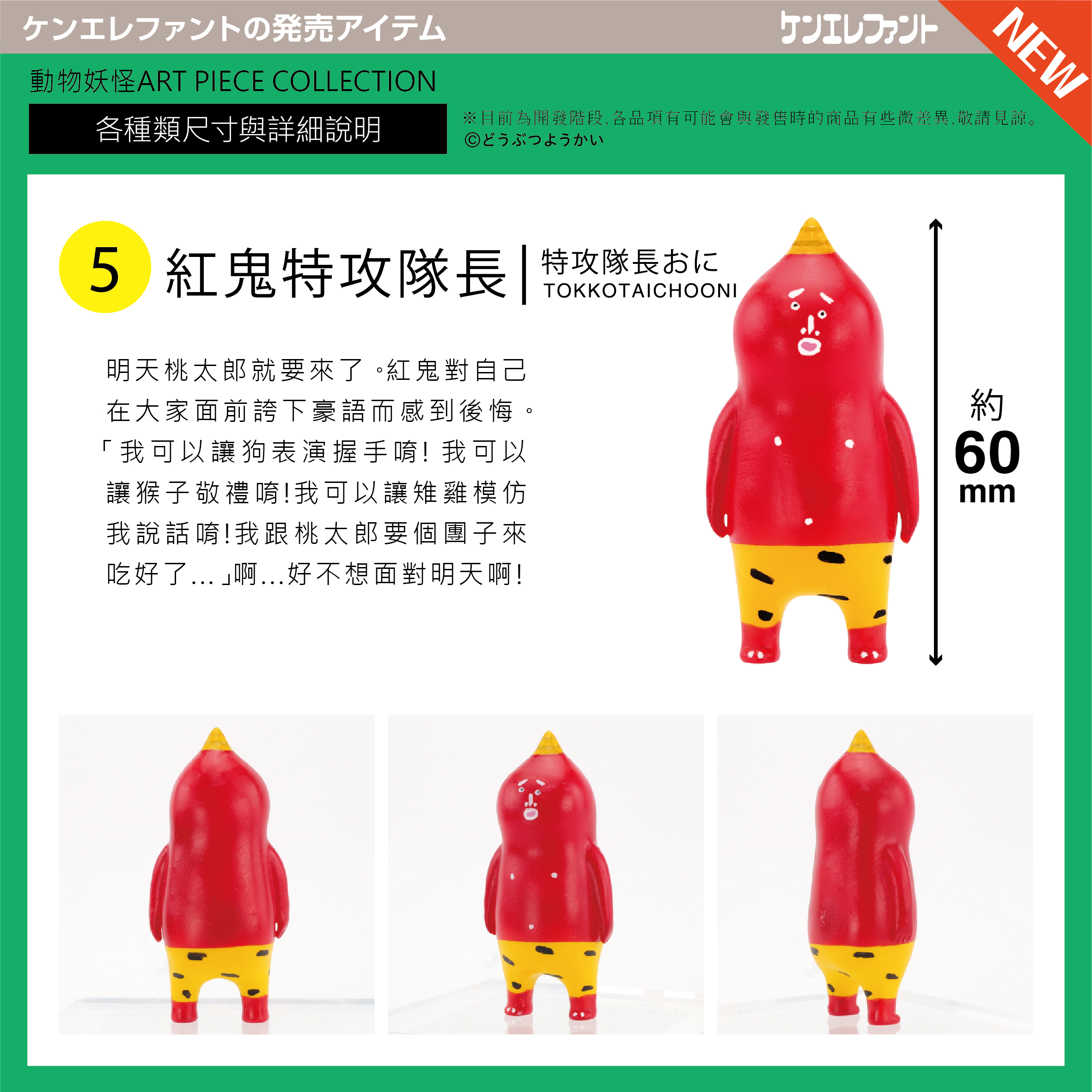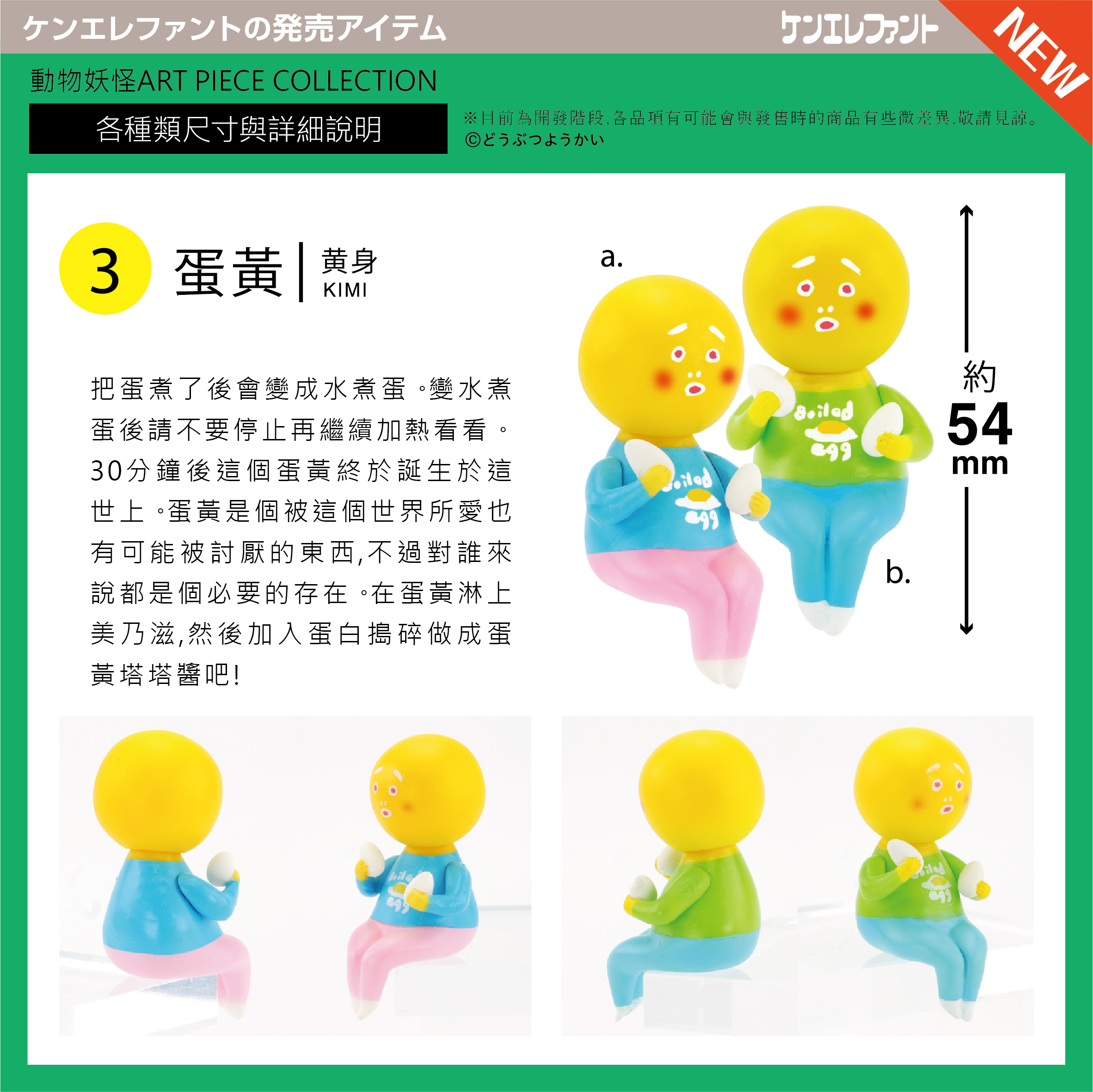 1.一套共5款,包裝方式為扭蛋,蛋黃款分為藍、綠兩款,此款式為隨機出貨。