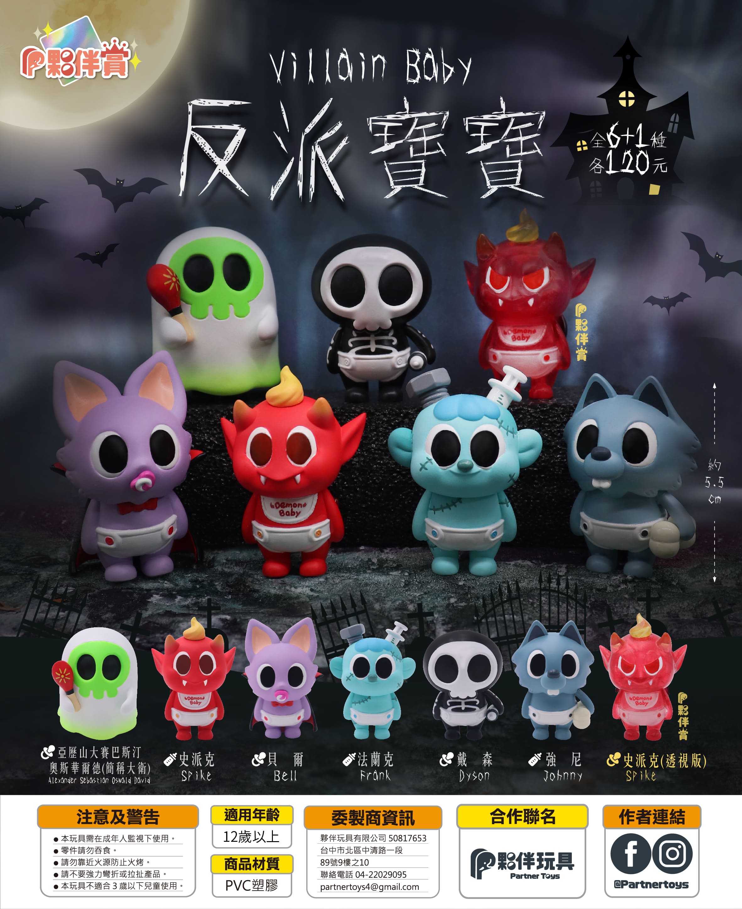 1.一套共基本6款,夥伴賞為隨機出貨,如有抽中將取代史派克實色版。