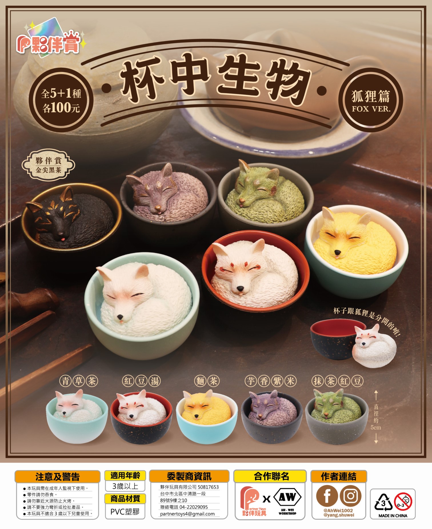 1.一套共基本五款,夥伴賞為隨機出貨,如有抽中將取代青草茶
