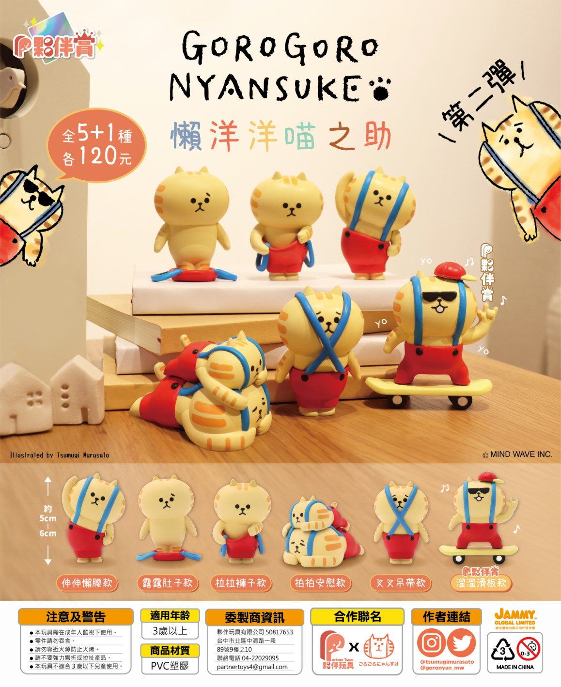 1.一套共基本五款,夥伴賞為隨機出貨,如有抽中將取代叉叉吊帶款。